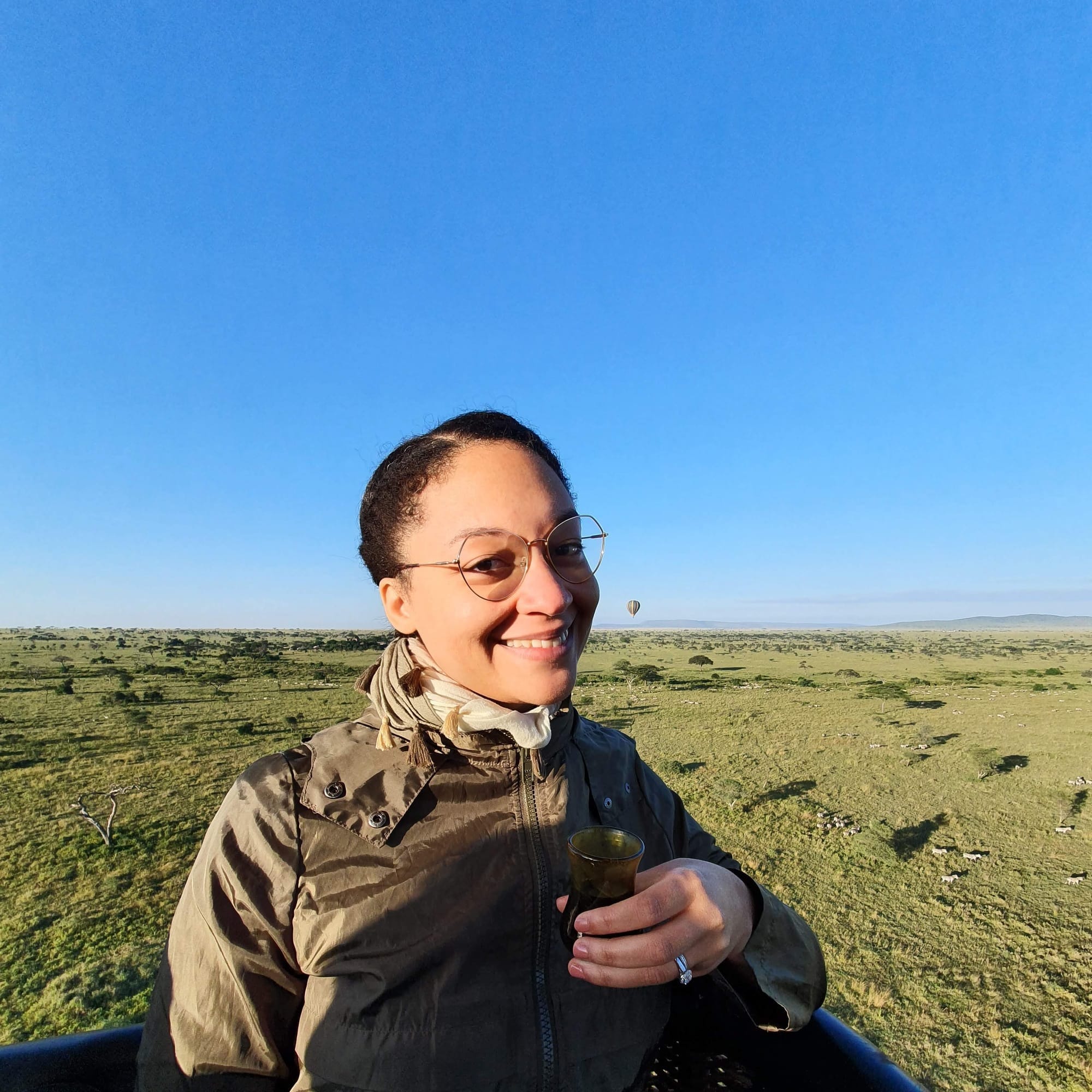 One of the surreal moments during our flight was when our Pilot Bill started serving us... warm coffee! In the sky! Whilst flying a balloon! That is how safe we were, floating above the beautiful herds whilst overseeing all of the Serengeti plains.