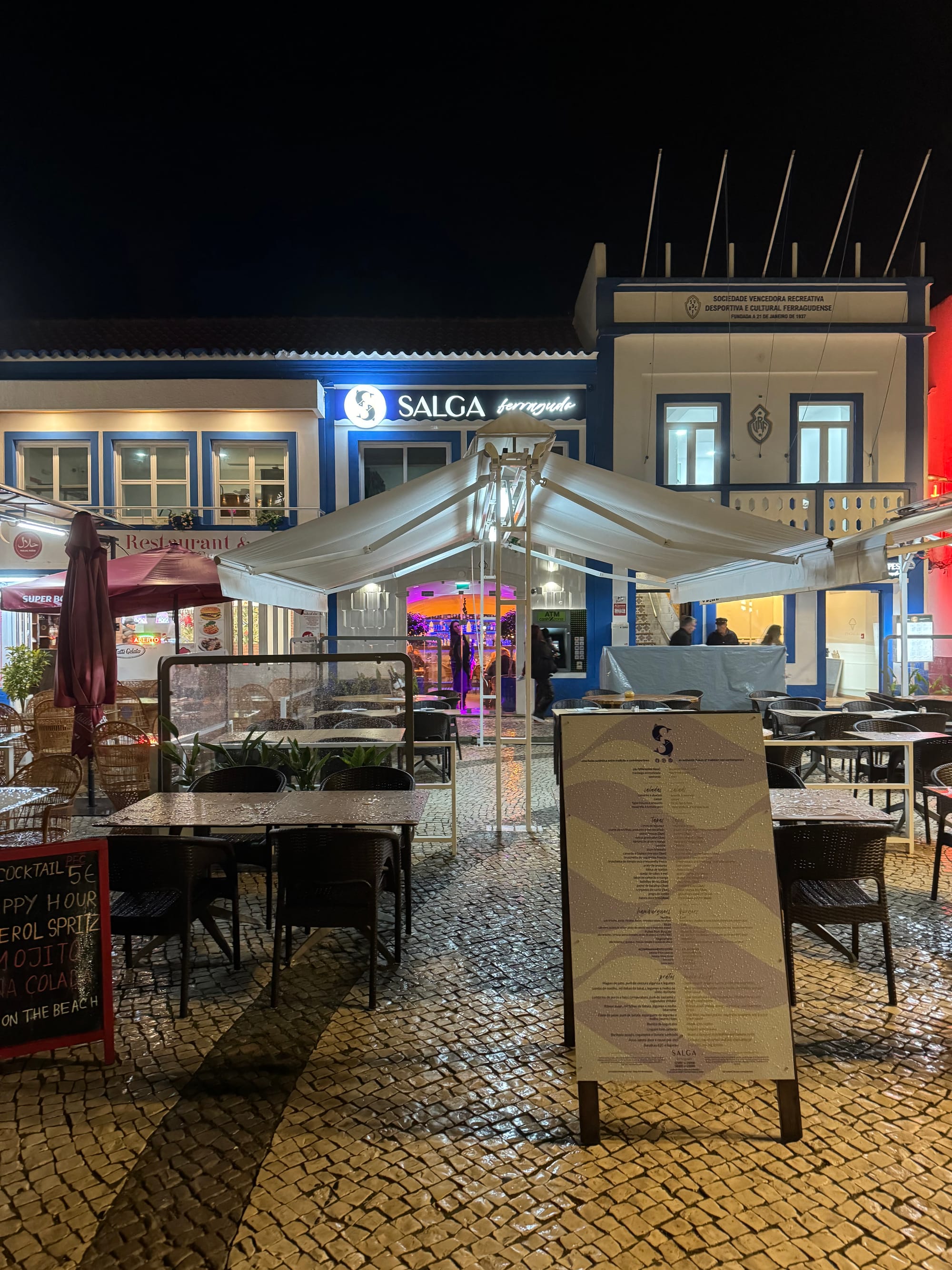 I first went there with a girlfriend for dinner and then with my husband for a weekday lunch alfresco. Salga is new fixture in Ferragudo and a sister restaurant to aforementioned O Barril, also in Ferragudo. Energetic service, open kitchen, terrific food. Not only it is stunning but very good.