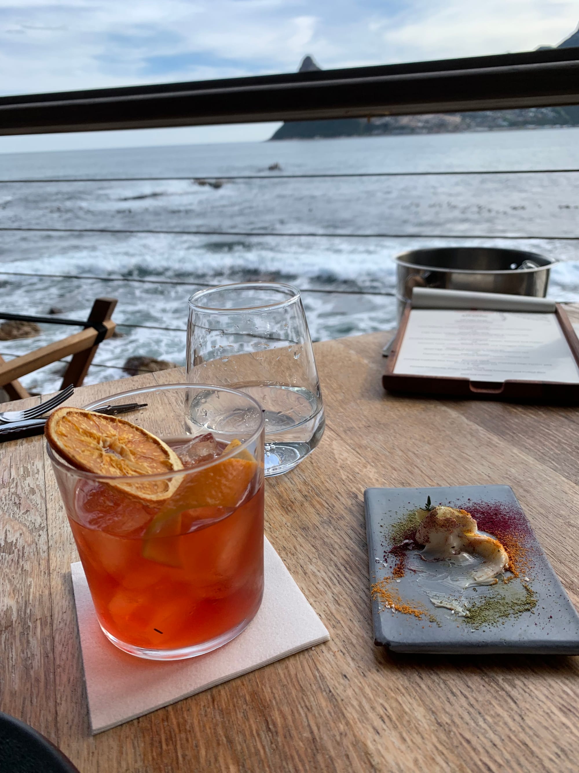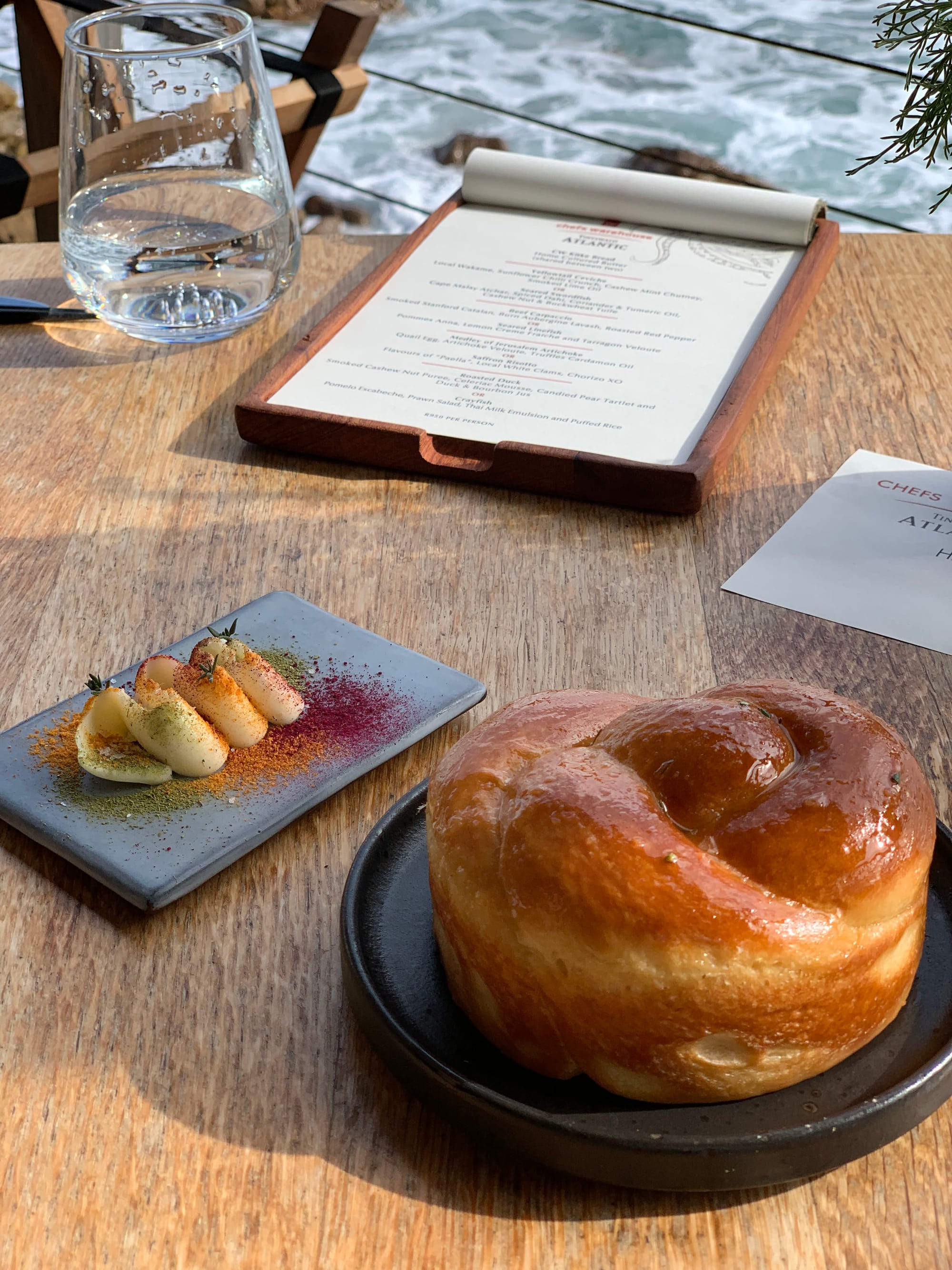 With such a gorgeous scenery before our eyes we wanted nothing else but to enjoy the views and the gorgeous local seafood in a festival of small plates made to share. We started with the crispiest cocktails - my husband and I love cocktails to kick off a meal or at aperitivo! - and the shiniest South African brioche and homemade churned butter.