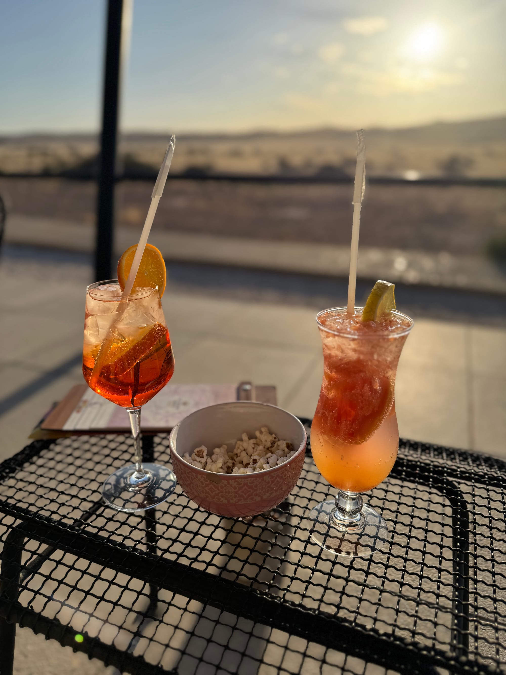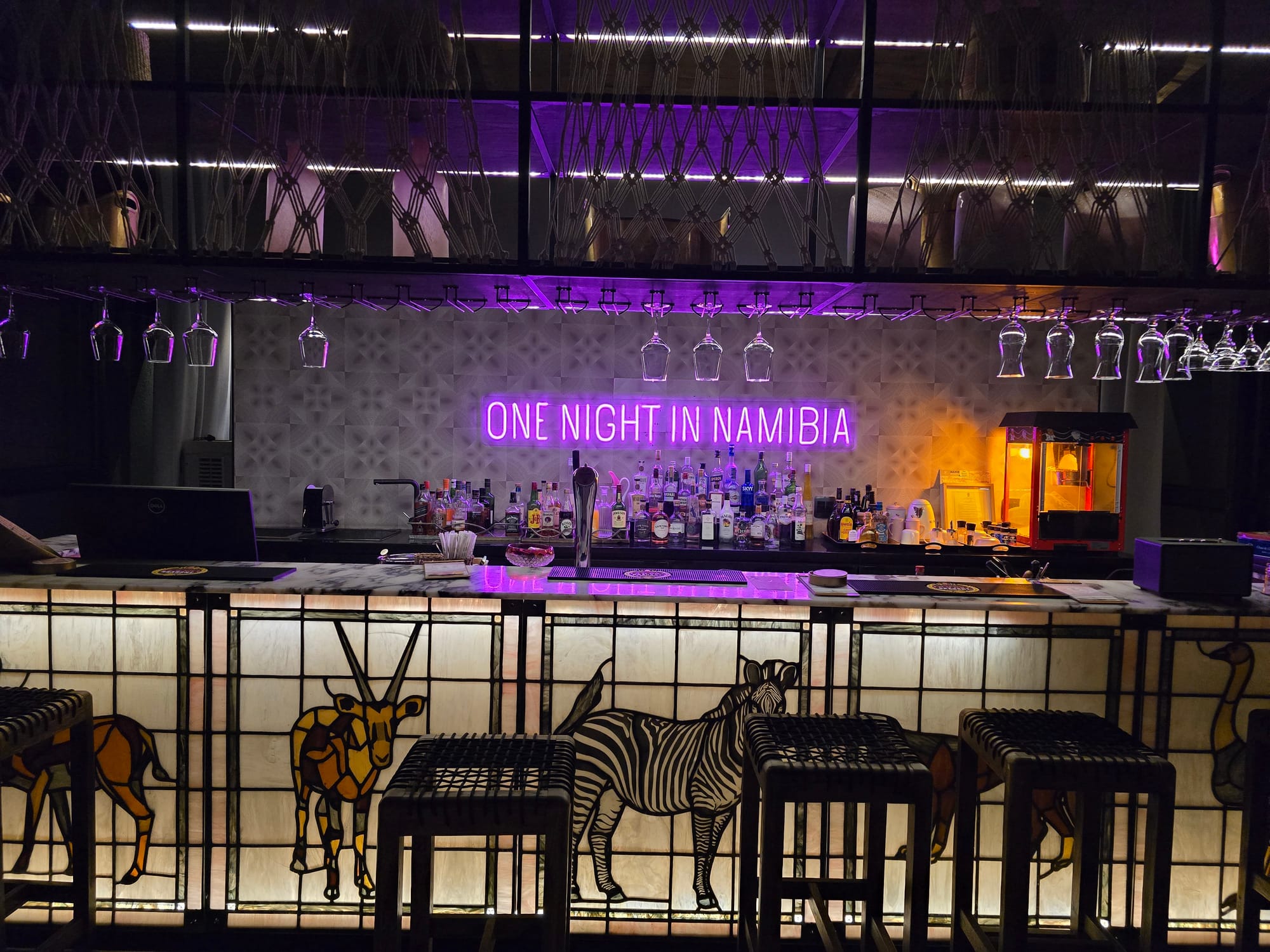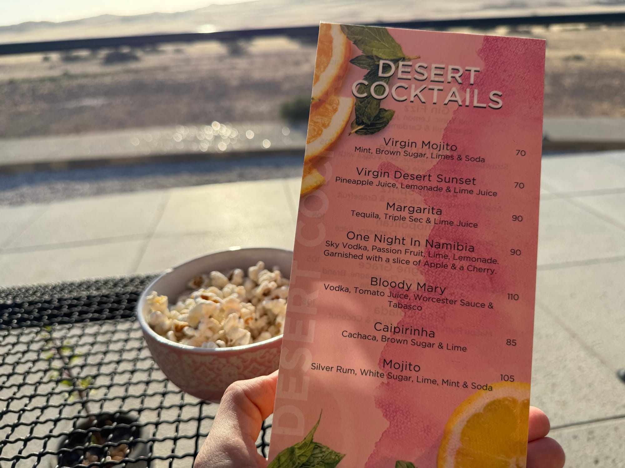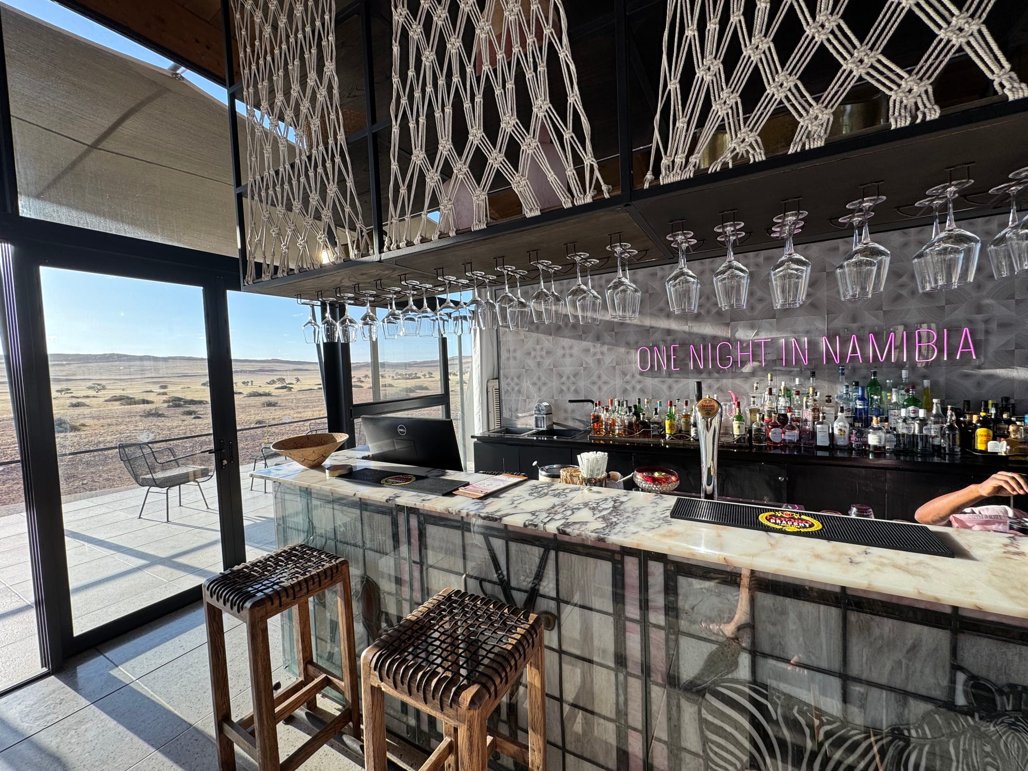And speaking of pink details, we were in for more surprises at the most amazing bar in Namibia with its vast array of pink cocktails and popcorn bowls!