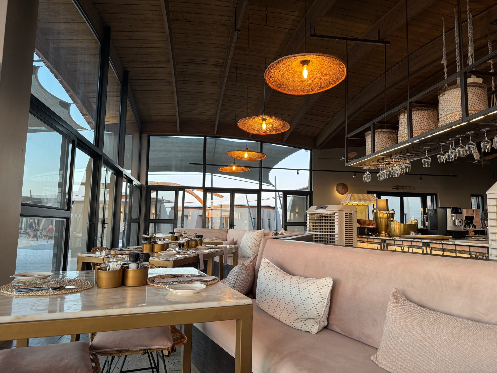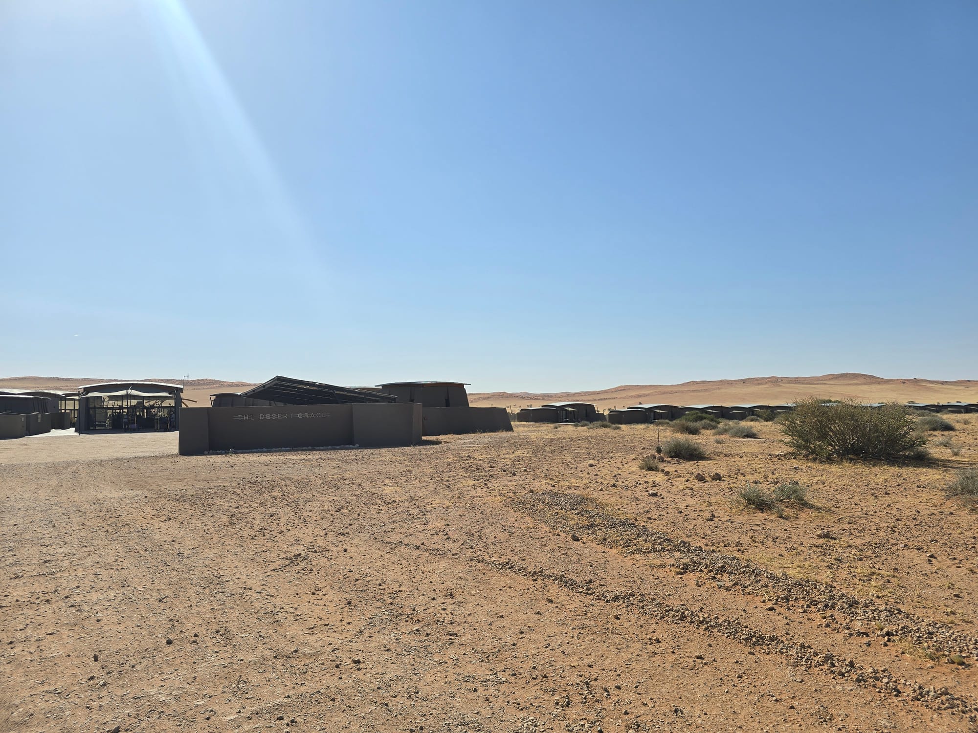 When we arrived at the Desert Grace, we were impressed by the expansion of the site and how you could not see it from afar nor see anything from there, being perfectly secluded. The grey buildings that resemble tents in the desert are an amazing feat of engineering, built with bags of desert sand. You cannot get more sustainable than that in the middle of the desert.