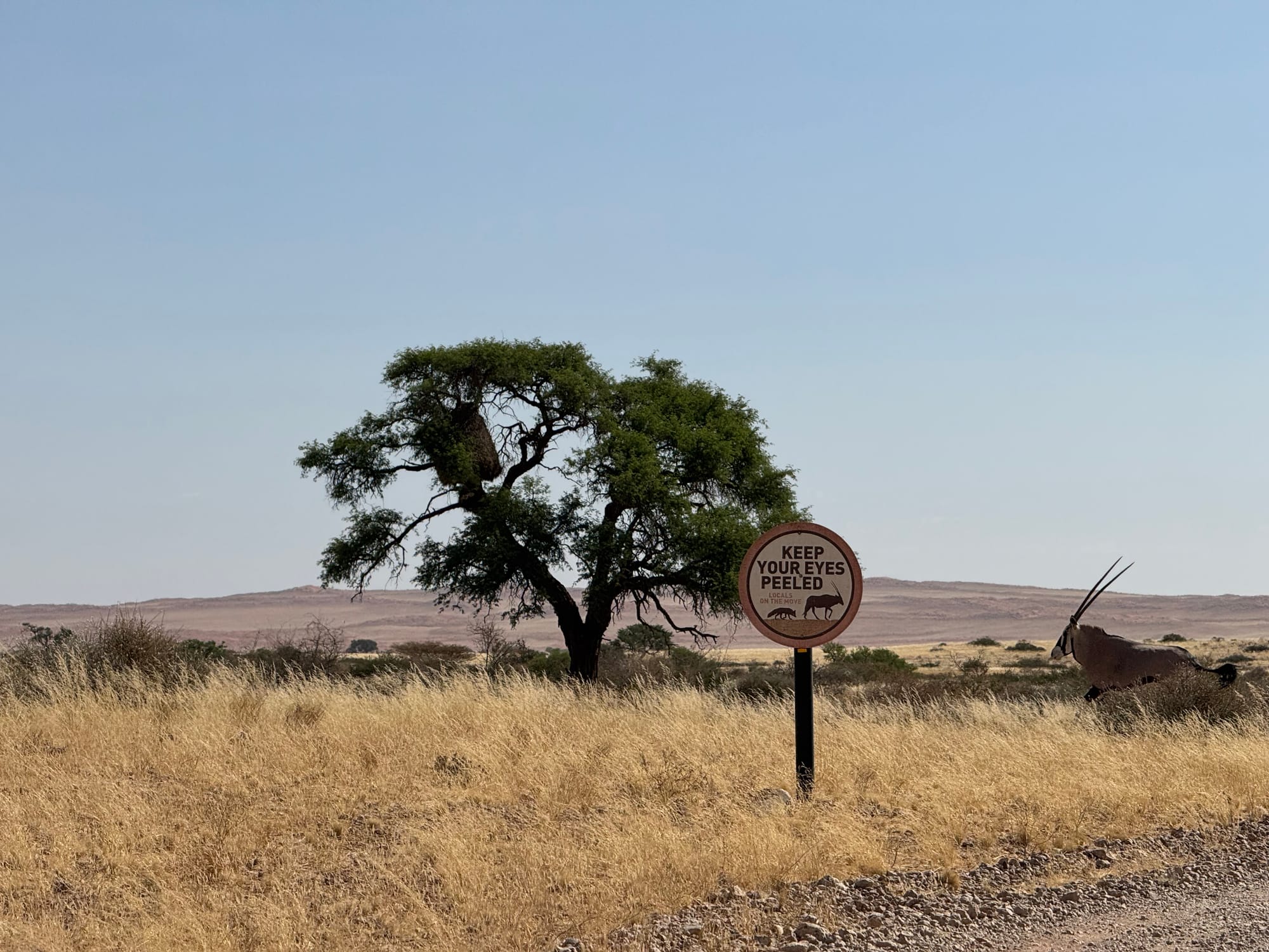 As soon as we entered the Gondwana Namib Desert Collection property, we were in for a ride with the cutest road signs in the world and... animals every where, roaming free.