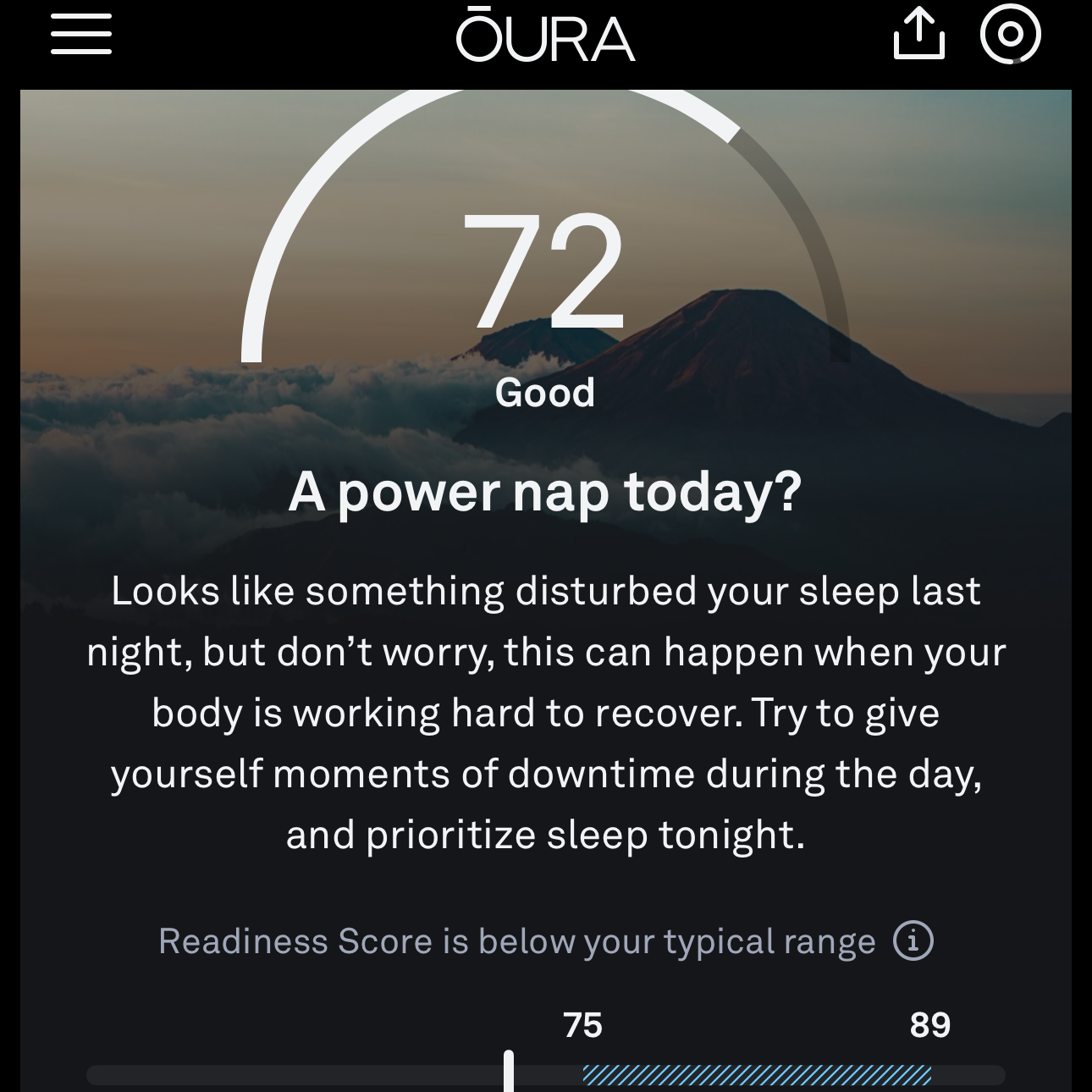 As my sleep can be pretty shaky in some specific moments of the month, I sometimes head to work with only on 4-hour sleep and very tired. And the Oura Ring knows it BUT always recommends me to take it easy or nap. And this is where it's tricky. I want to scream at my Oura Ring and tell it I have to work. I do tag the Work activity daily but still, it will recommend me to take a nap. Dear Oura Ring, I promise I will nap during the day when I retire, now it's not possible. I would rather it help me improve my heart rate and dealing with stressful situations that I do have on a daily basis at work - like, if it notices a rise, recommend a breathing exercise in 5 minutes? that I could do! - instead of just heading home and take a snooze. Fail!