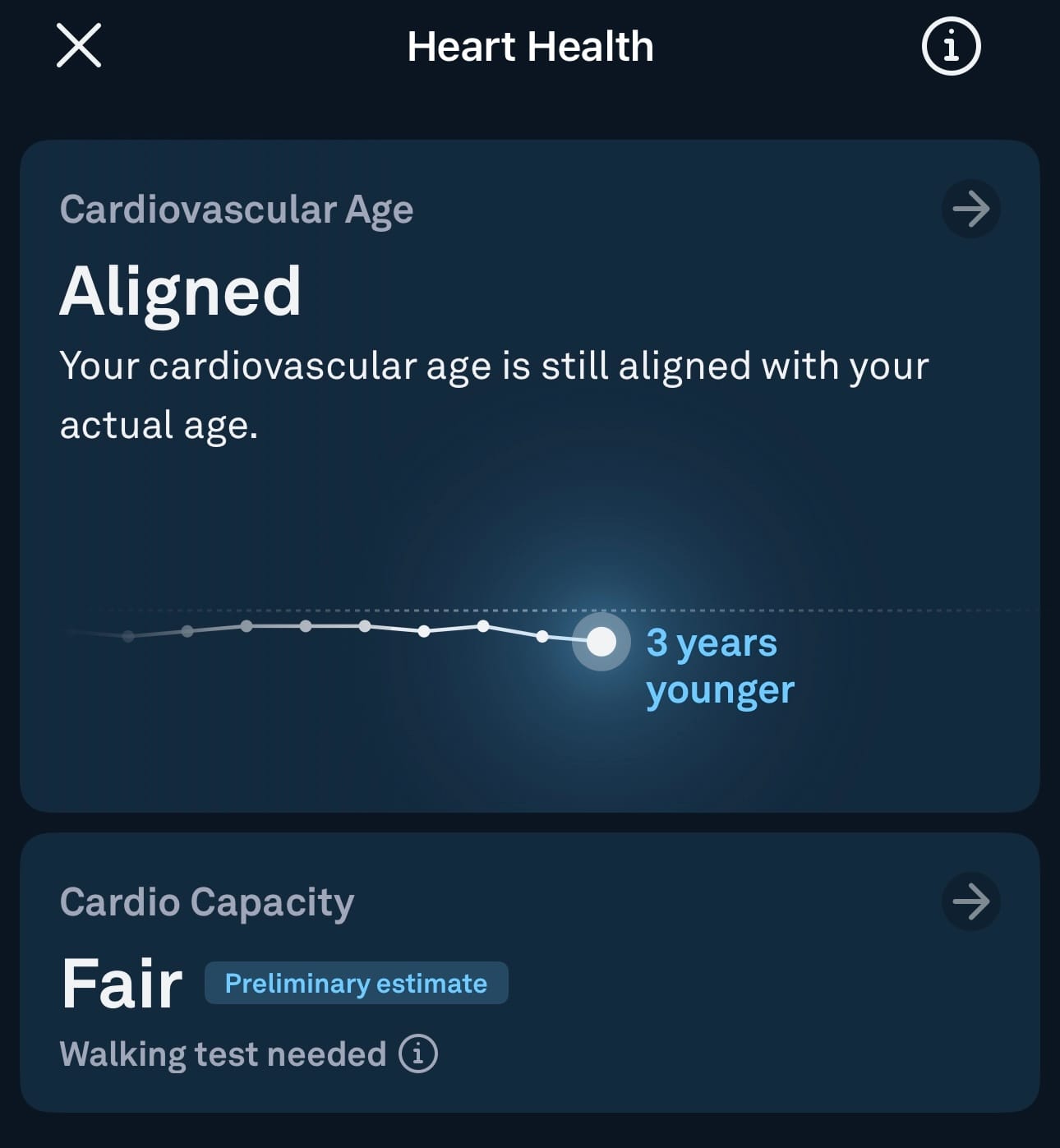 Oura Ring APP - Activity and Cardiovascular age screens