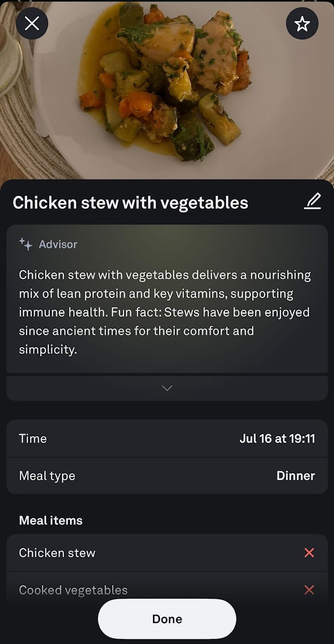 Oura Ring APP - New Meals feature which uses AI to identify your food intake