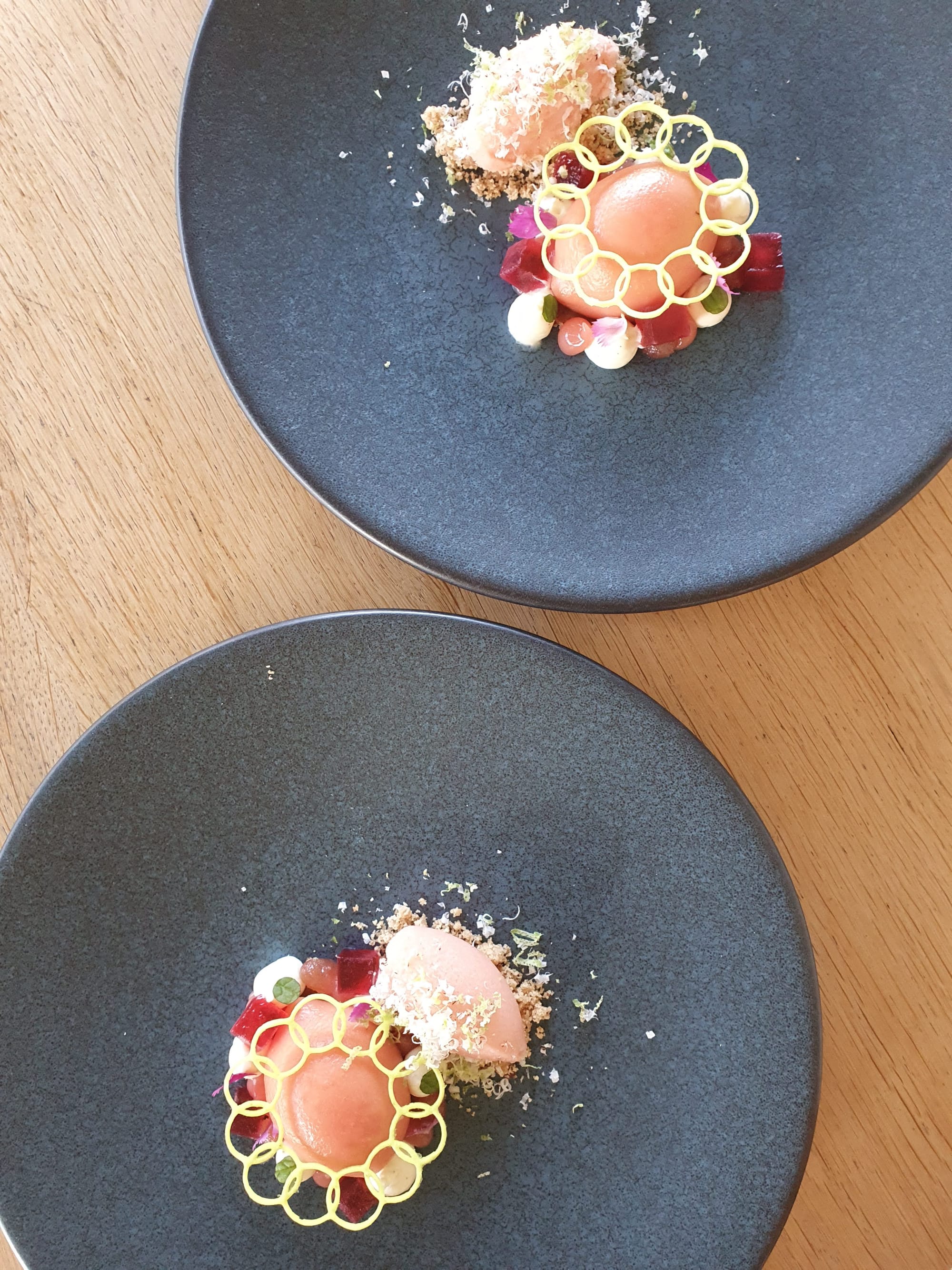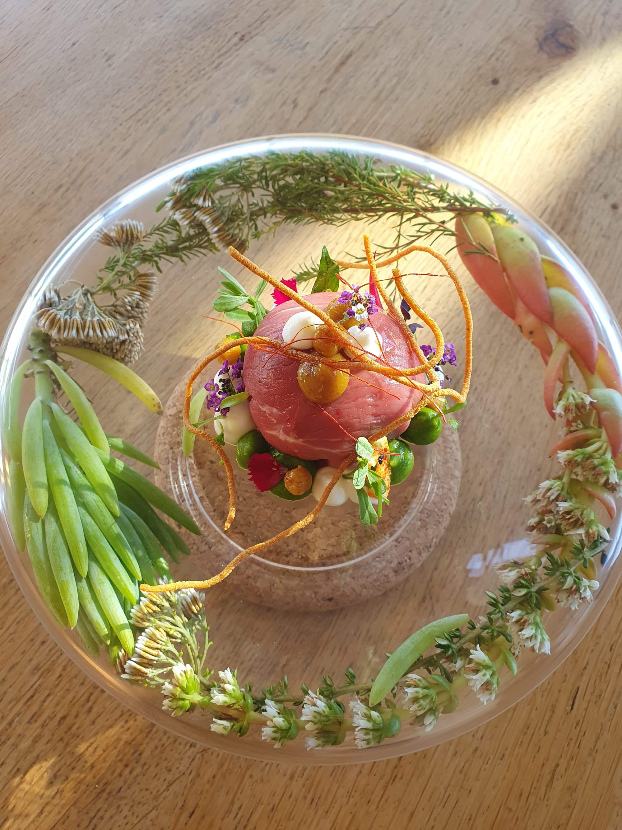 This dessert was a journey in itself. It comes covered in a can - which can frighten you at first, how can a fine dining experience end with canned goods? - and then you discover the most spectacular dessert, which reminds the chef - Peter Duncan - of his mother, her work and how he wanted to honour her with the freshest dessert ever. Spectacular.