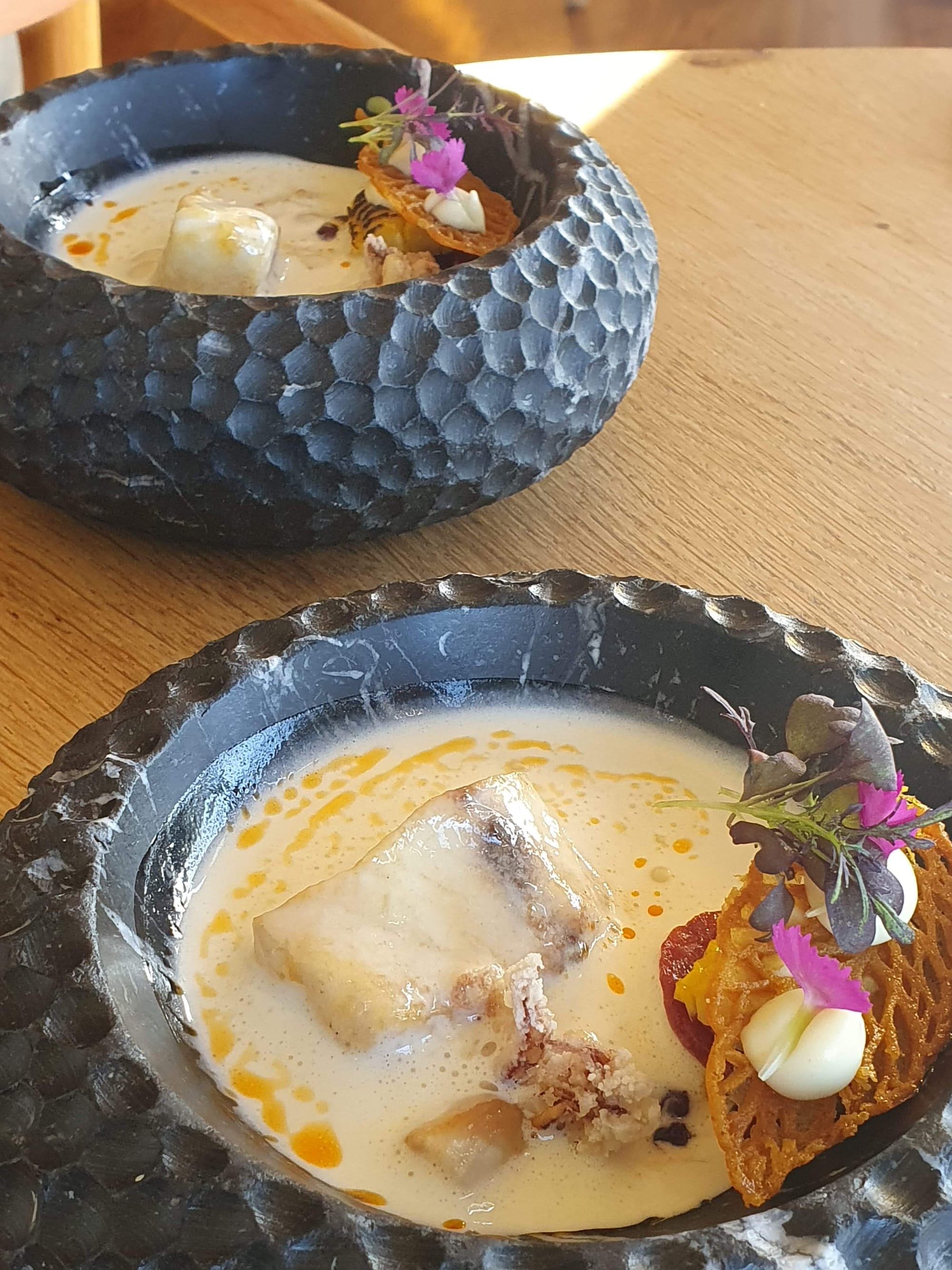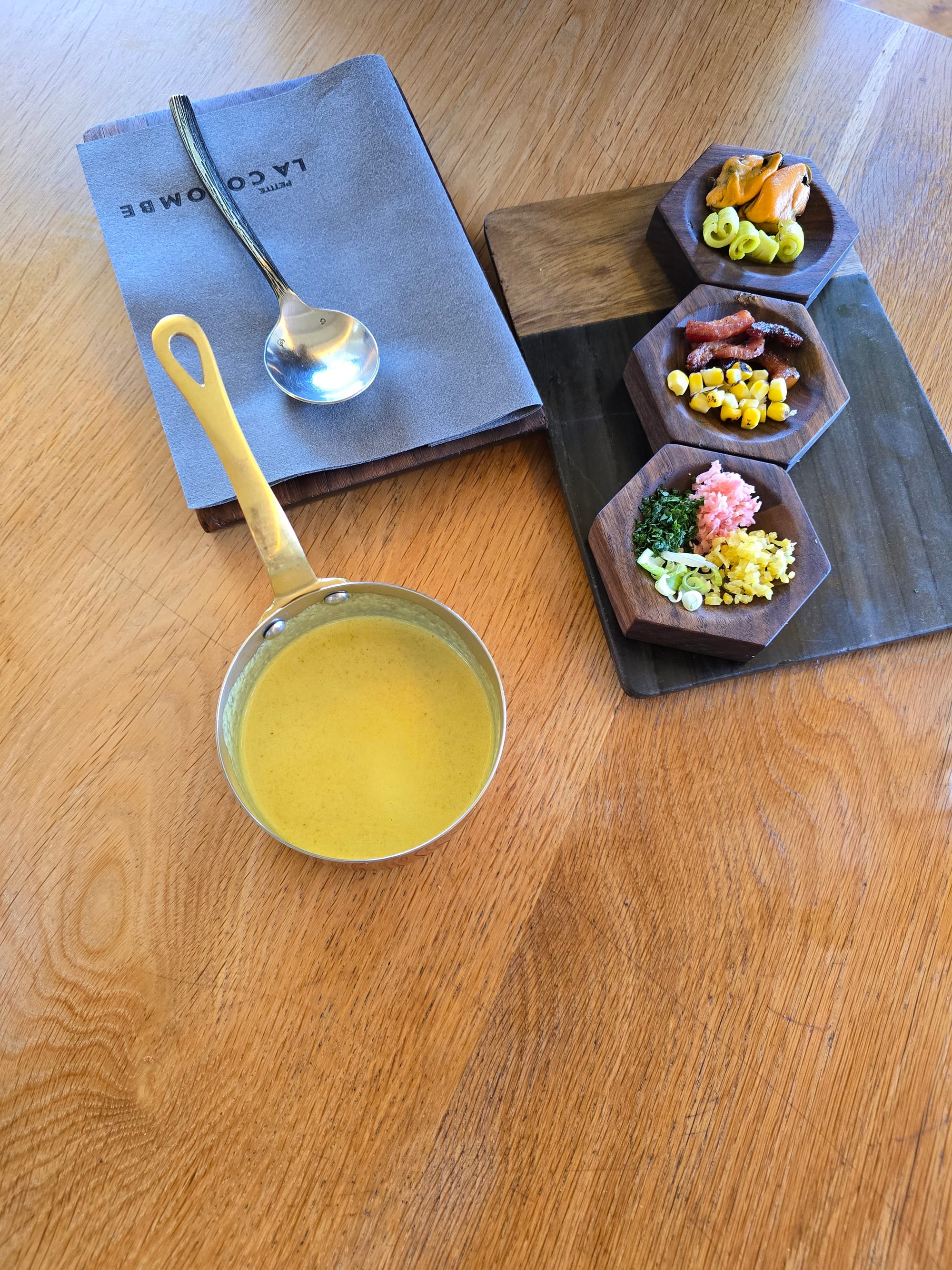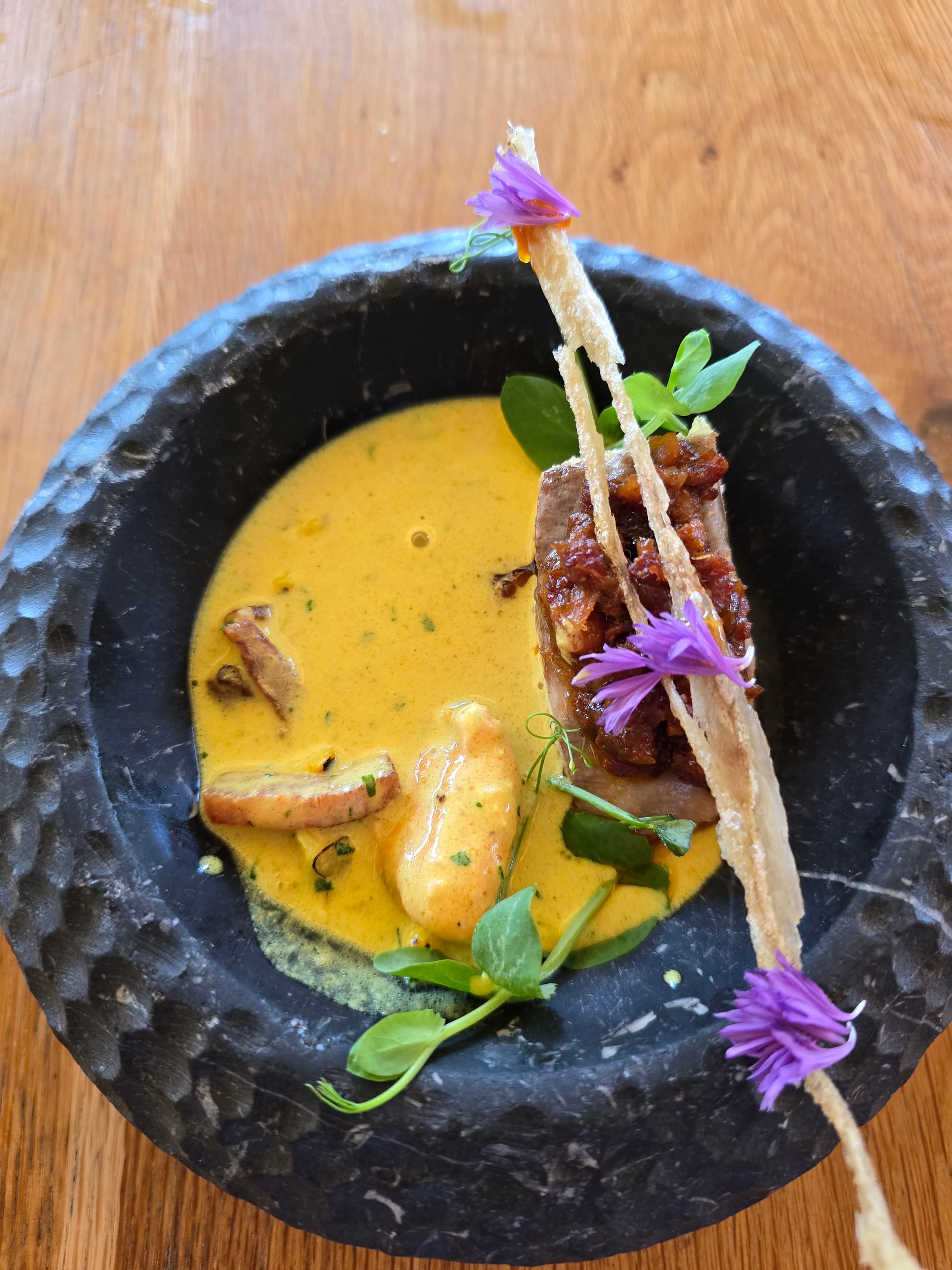 Same as in the Winter menu, so we were glad to enjoy this experience again. You get the line fish and you cook it at the table, confit style. Then veggies, spices and the most fragrant chowder is added to created a travel-worthy soup. I mean, how does this restaurant no have a Michelin star yet?
