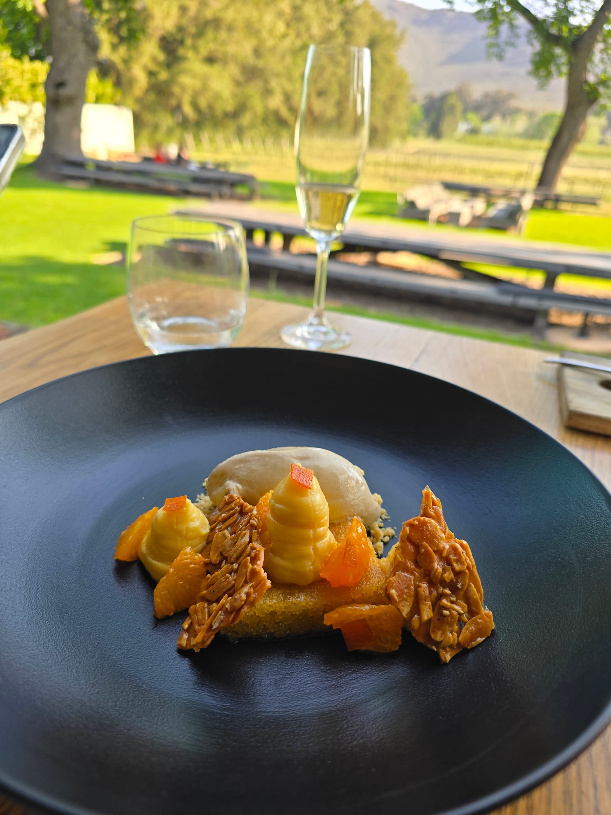 For dessert we had an almond tart with orange that made us travel right back to Algarve, the Portuguese land of oranges and almonds.