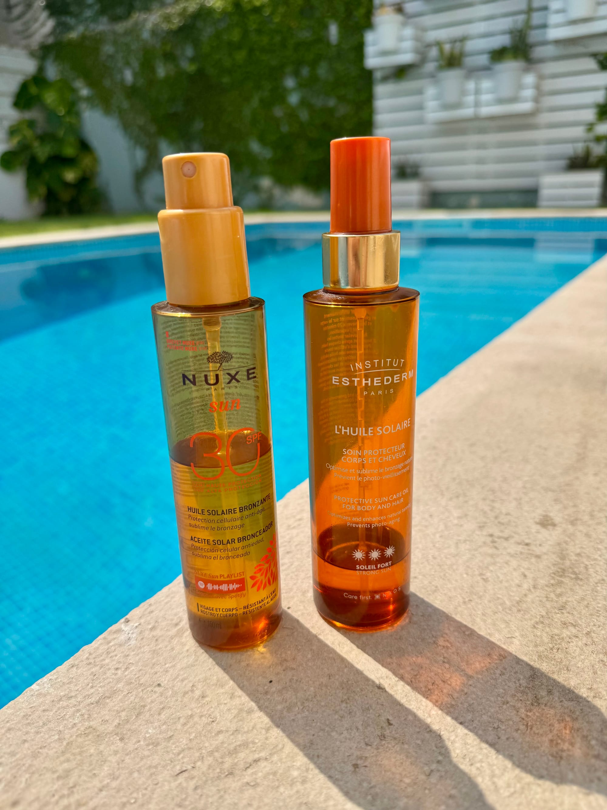 Aimed for both body and hair, I first discovered this product when a beauty lover friend gave me one a few years ago. And my husband Bruno became obsessed to this day, so this is our second bottle. Yet it does not have SPF, so... there's that and don't go by the marketing copy using the word protection... This oil is ideal for sun-tolerant skin, offering a silky, luxurious feel while helping prevent wrinkles, brown spots, and dehydration. It smells great but don't think you are "protected" from UVA/UVB rays just applying this one.