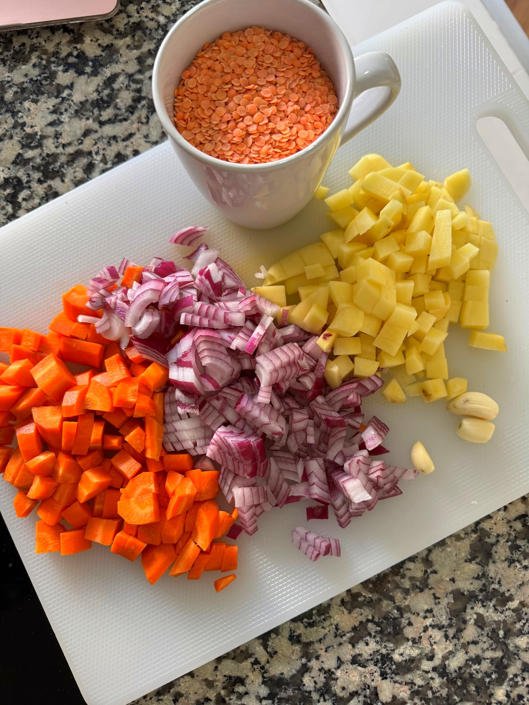 I diced the 2 carrots, the onion and the potato