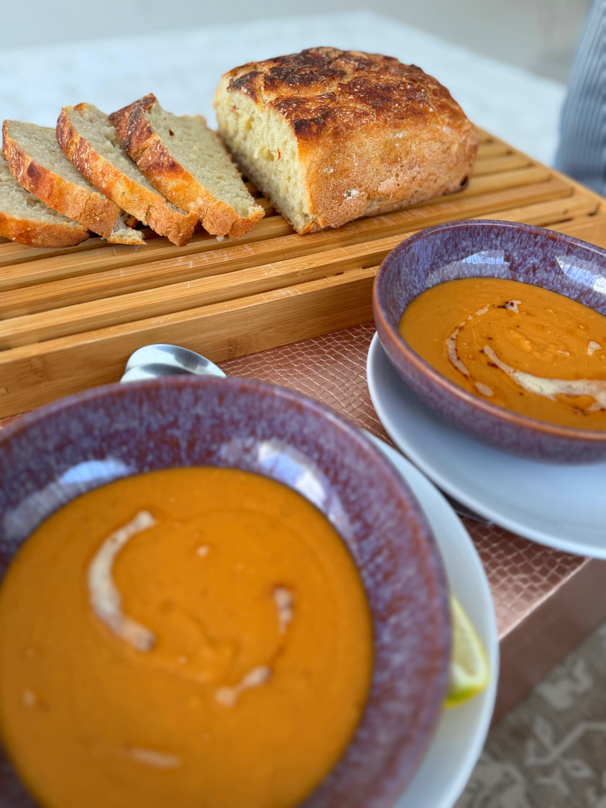 While I was making this soup, my husband was baking bread. It was so comforting to eat the tastiest soup with the freshest bread... yummy!