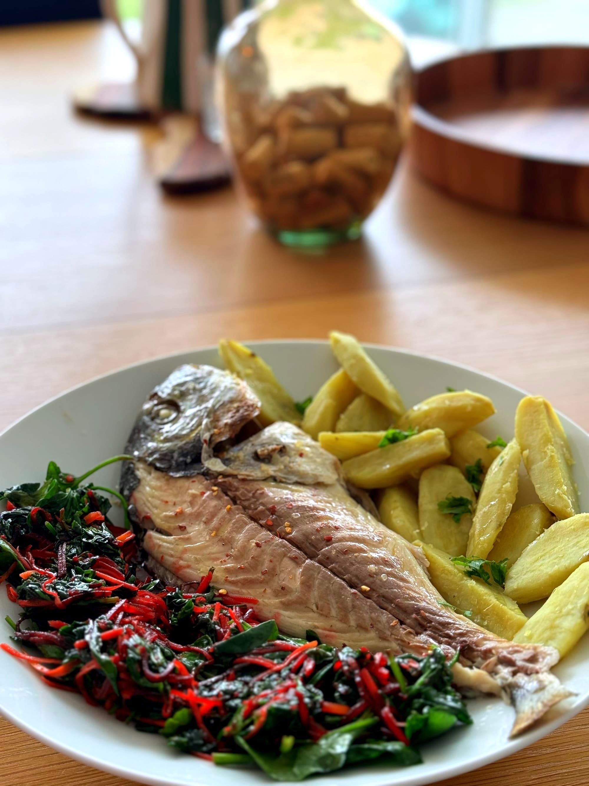 Contrary to the previous episode which was very carb heavy for me, these dishes are more balanced. They will eat the fish beautifully presented with lemon & fresh herbs and roasted tomatoes. I see on the table that they are having this with sliced of olive bread and I am here for it. It is so so lovely, I wanted to recreate it immediately.