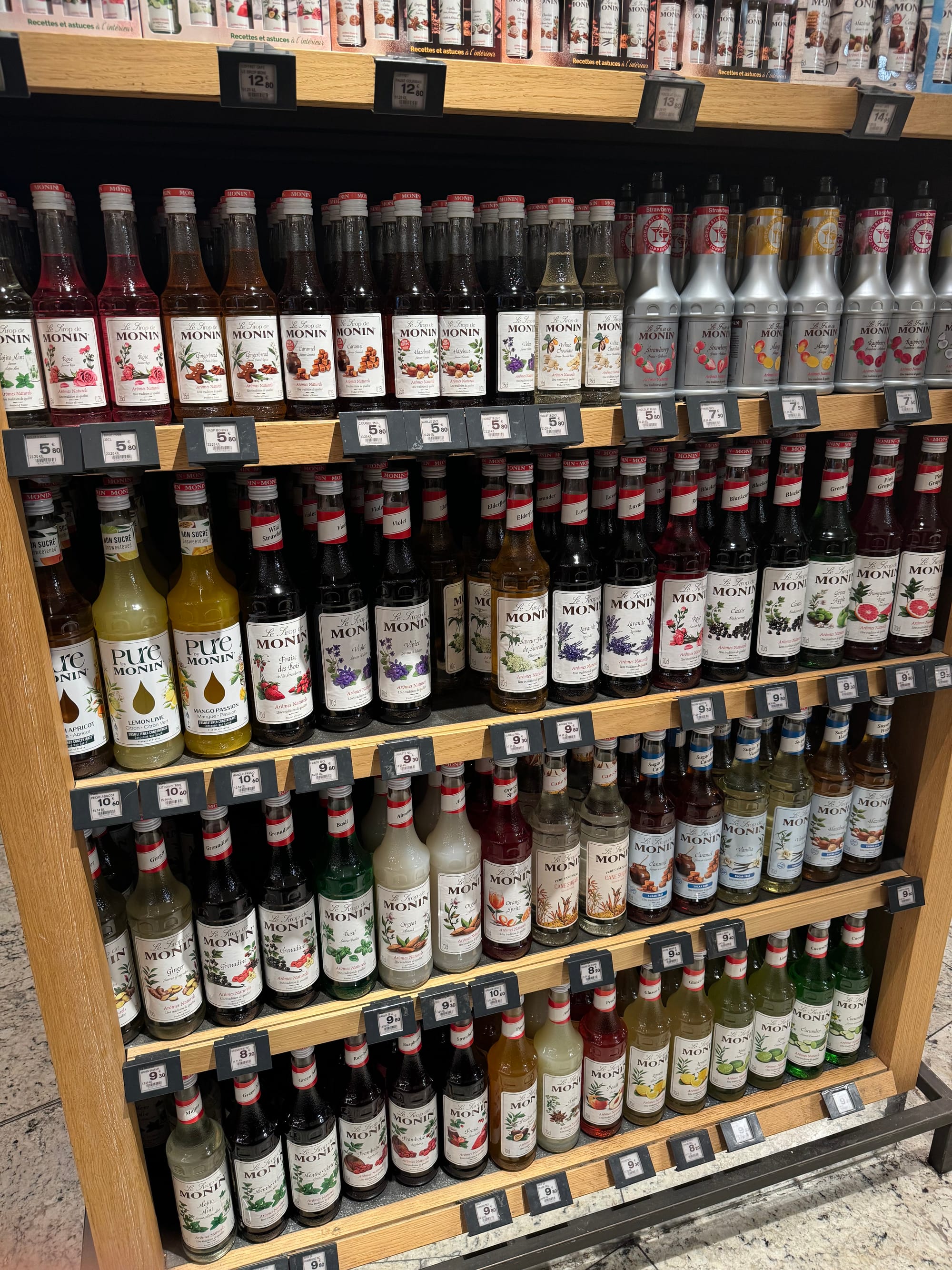 I love my syrup pumps on my coffee in the morning and La Grande Épicerie has a great selection from the classic flavours to special editions and sugar free ones. My favourites are sugar free Vanilla and Caramel (in the big bottles), but it's the place to try new ones such as the Hazelnut or Coconut (in smaller bottles). They also have syrups for cocktails which I have yet to try.