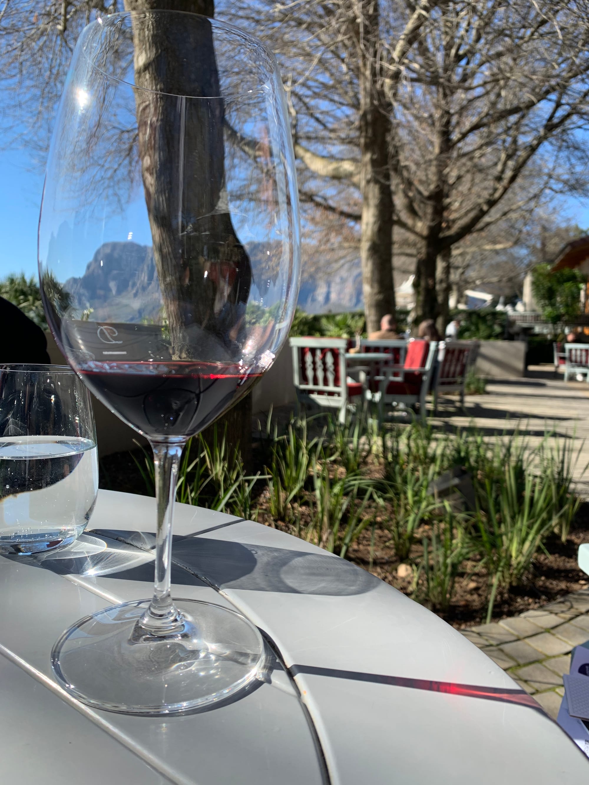 Winter sun in the Delaire Graff court